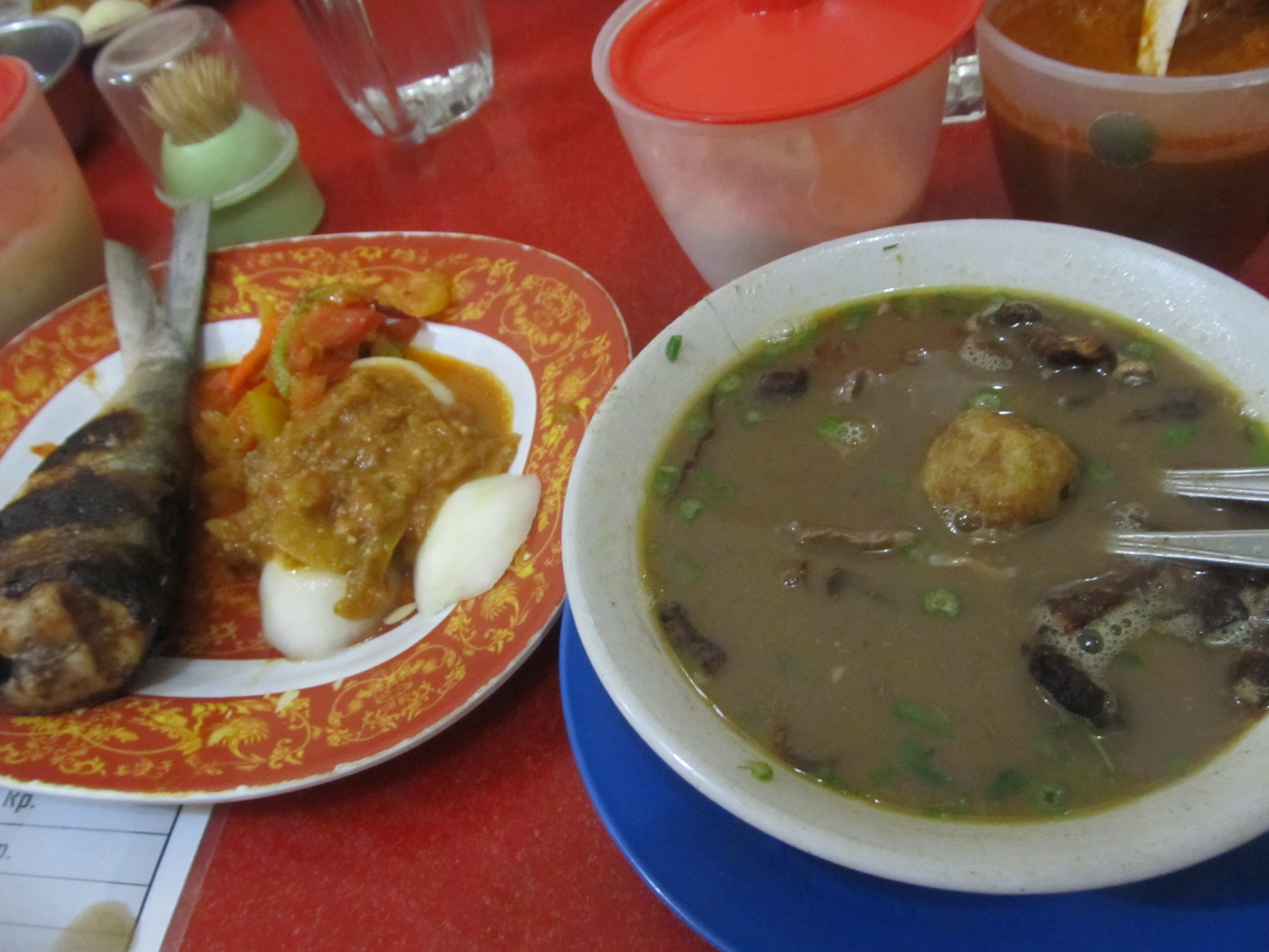 Saya ingin coba Palu Basa karena kata seorang teman, rasanya nendang banget. Dan ternyata benar. Memang tidak jauh berbeda dengan Coto Makassar tapi rasanya lebih ‘berat’ dari Coto Makassar. Bingung euy jelasinnya gimana, kental dan sangraian kelapanya itu lho…juara! Dan yang pasti waktu itu mangkuk saya sampai bersih. Hahahaa!