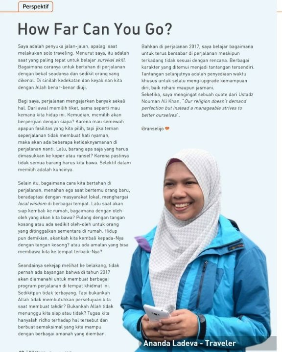 Bisa dikatakan 2017 adalah tahun yang tidak produktifnya saya dalam hal perbloggingan. Ada sih beberapa tulisan di sini tapi sebagian besar rasanya merupakan tulisan advertorial. Tapi alhamdulillah di kesempatan lain, ada tulisanku yang muncul di Majalah Rumah Zakat.