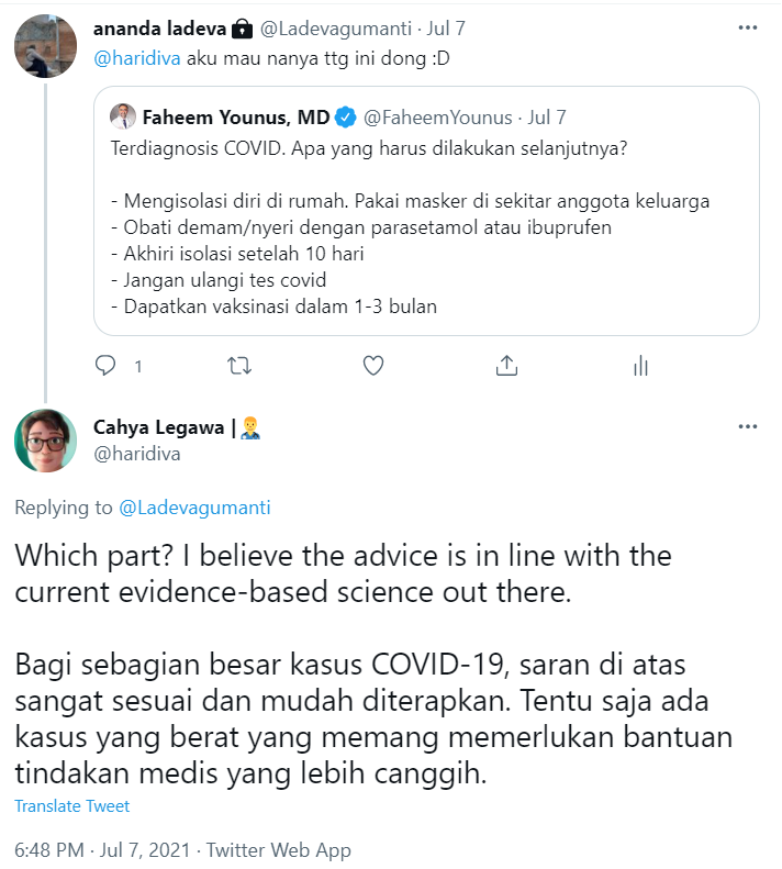 Lalu, karena sempat bingung, saya pun mention Sahabat saya, dokter Cahya mengenai kebingungan saya.
